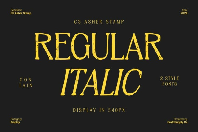 This font is used only for demos (Demo license). If you want to use this font for commercial use please contact: https://craftsupply.co/product/cs-asher-stamp/