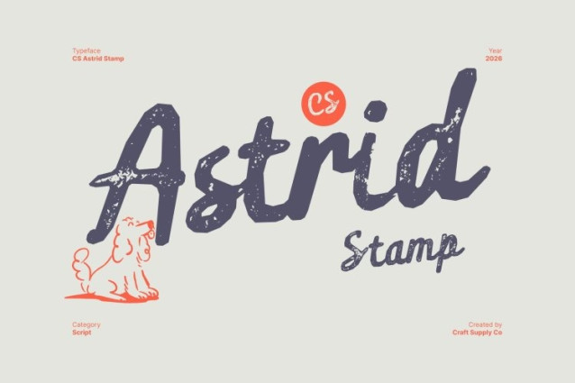 CS Astrid Stamp Font This is a modern script font built on smooth, connected cursive letterforms. Its flowing handwriting style creates a natural rhythm that feels elegant yet relaxed. The contemporary structure keeps the script clean and balanced, making it suitable for modern visual communication with a soft, human touch.