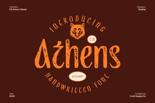 This font is used only for demos (Demo license). If you want to use this font for commercial use please contact: https://craftsupply.co/product/cs-athens-stamp/