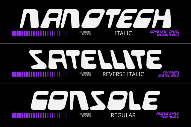 Perfect for Trendy, Experimental Projects CS Atomic thrives in bold compositions that demand personality. Perfect for creative projects that dare to stand out, CS Atomic gives you the tools to balance nostalgia and innovation. It’s more than just a font—it’s a design experience that sparks curiosity, energizes compositions, and pays homage to a past era while looking firmly toward the future.