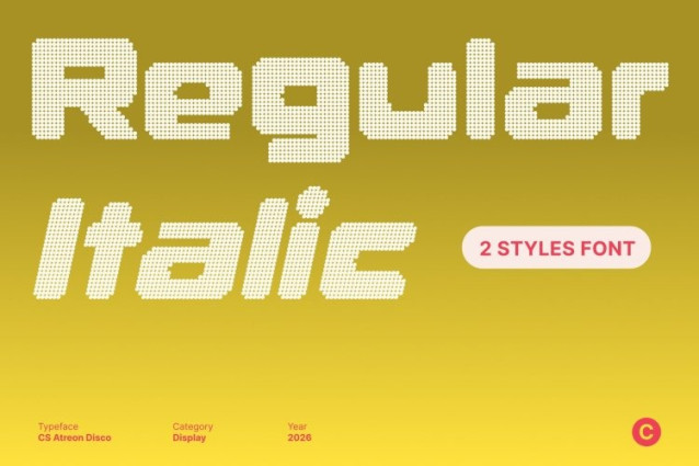 CS Atreon Disco Font This is a bold display sans serif font created to make a strong visual statement. Built for attention and clarity, it combines solid geometric forms with futuristic design principles—now energized with a vibrant disco spirit. The result is a powerful typographic presence that stands out in any composition.