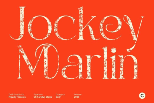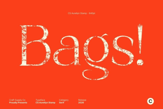 CS Aurellyn Stamp Font This is a modern Art Nouveau serif font defined by smooth, flowing lines and graceful organic forms, enriched with a distinctive stamp texture. This combination merges classic Art Nouveau elegance with a subtle vintage character, resulting in a typeface that feels refined, expressive, and artistically aged. The stamped effect adds depth and tactile charm without diminishing its sophisticated presence.