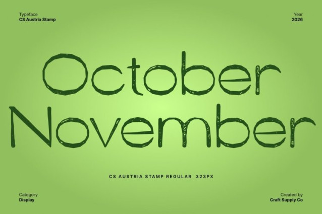 This font is used only for demos (Demo license). If you want to use this font for commercial use please contact: https://craftsupply.co/product/cs-austria-stamp/