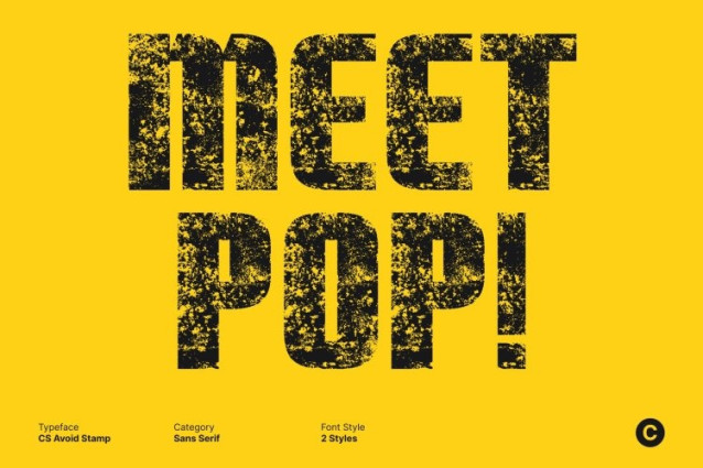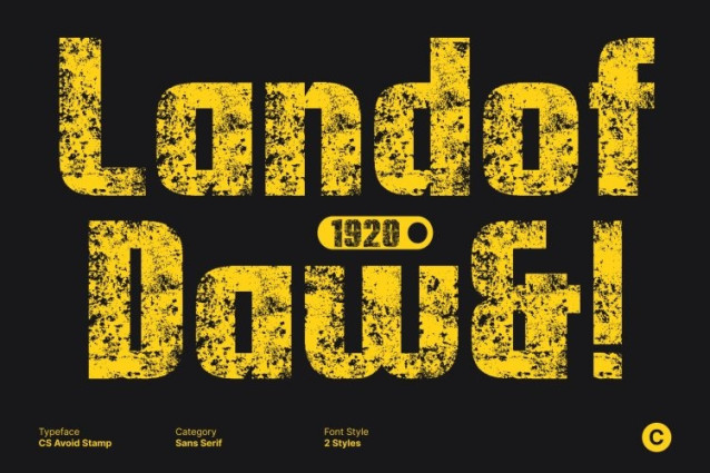 CS Avoid Stamp Font This is a modern condensed sans serif font designed to deliver maximum impact in minimal space. Built with narrow proportions and solid structure, this font communicates strength, precision, and efficiency. The added stamp texture introduces a subtle vintage and industrial character, giving the font a raw, tactile feel while preserving its clean, modern foundation.