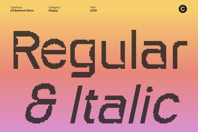 CS Balmenti Disco Font This is a bold display sans serif font that blends sharp, clean industrial lines with vibrant disco-inspired energy. Its strong geometric construction delivers a modern, confident appearance, while the disco styling adds a glamorous edge that feels dynamic, stylish, and ready to shine.
