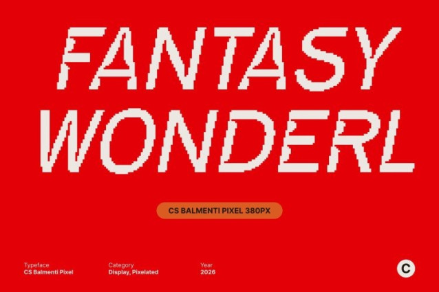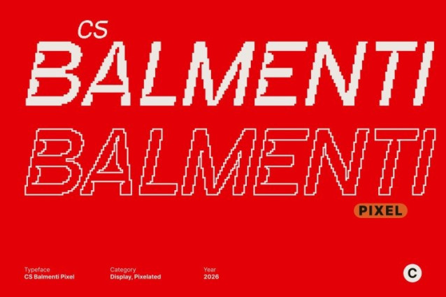 CS Balmenti Pixel Font This is a display sans serif font defined by sharp lines, solid structure, and pixel-inspired detailing. Its clean construction delivers a strong industrial feel, while the pixel elements introduce a subtle digital character that feels modern yet rooted in classic screen-based typography. The result is a font that looks firm, technical, and visually commanding.