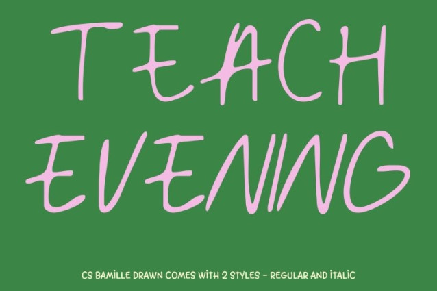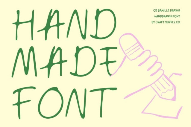 CS Bamille Drawn Font This is a handwriting font created to capture the charm of natural pen strokes. Its fluid, organic forms give each letter a soft and expressive feel, bringing warmth and authenticity to any design. The drawn texture enhances its handcrafted character, making the font feel personal and inviting.