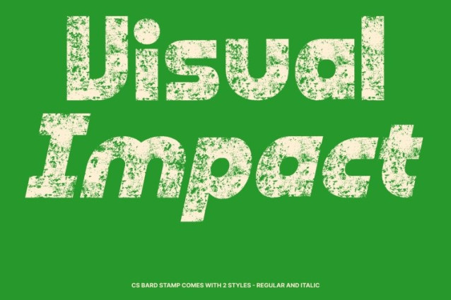 CS Bard Stamp Font This is a bold, chunky display font built to express confidence, fun, and strong visual impact. Its thick strokes and solid geometric forms create a powerful modern presence, while the stamped texture introduces an organic, handcrafted feel. This combination makes the font stand out with character bold, tactile, and visually engaging.