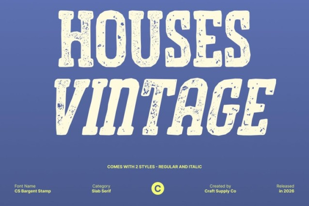 From logos and packaging to editorial layouts and promotional materials, this font adapts effortlessly across modern branding needs. Its assertive slab serif structure, combined with its vintage stamped texture, allows designers to craft visuals that feel strong, authentic, and memorable ideal for lifestyle brands, sports identities, campus projects, and bold contemporary campaigns.