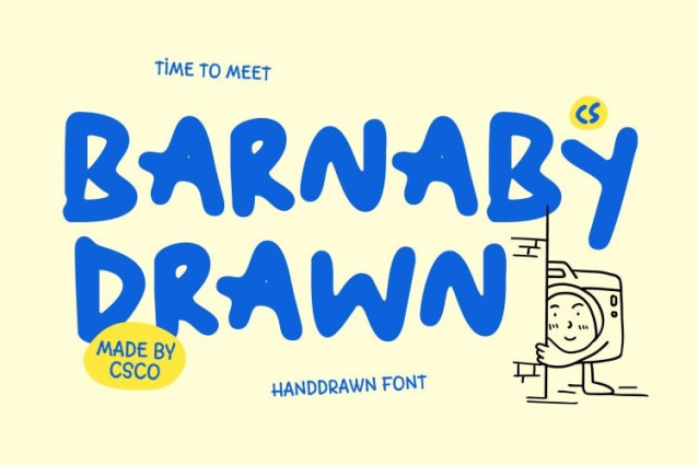 CS Barnaby Drawn Font This is a bold sans-serif display font designed to look delightfully irregular, energetic, and freely scribbled. Its intentionally chaotic strokes create a raw, expressive presence that feels spontaneous and full of personality. By rejecting rigid typographic rules, this font transforms imperfection into visual strength, making every word feel lively and creatively charged.