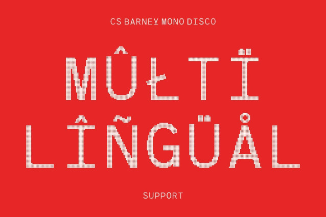 CS Barney Mono Disco Font This font merges technical precision and creative flair, presenting a modern monospaced sans serif font with clean geometric forms and perfectly consistent spacing. Its structure conveys a sense of balance and clarity, while the disco influence adds a vibrant, expressive twist.