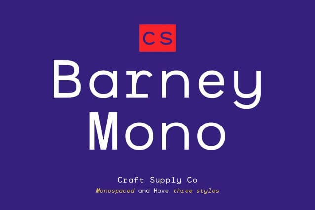 This font is used only for demos (Demo license). If you want to use this font for commercial use please contact: https://creativemarket.com/craftsupplyco/290265557-CS-Barney-Mono-%E2%80%93-Monospaced-Font?u=fontlot123