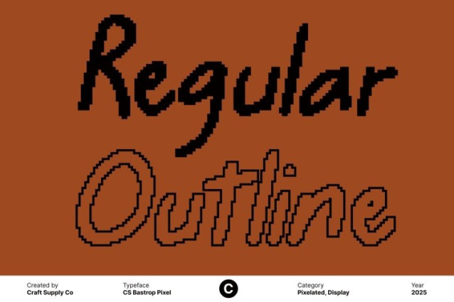 CS Bastrop Pixel Font This font brings the charm of handwritten strokes into a clean sans serif structure, all expressed through a fun pixelated aesthetic. This unique blend creates a typeface that feels friendly, modern, and full of personality. Each character carries a handmade touch while still embracing the nostalgic appeal of retro digital pixels.