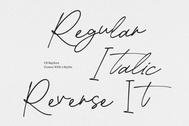 CS Baylora Font This is a signature script font crafted to capture the fluid beauty and exclusivity of real handwritten signatures. Each stroke flows smoothly with natural curves and subtle variations, giving the font an authentic and personalized feel.