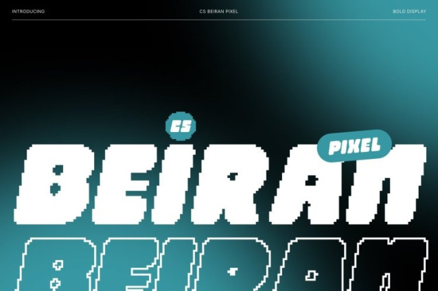 CS Beiran Pixel Font This is a bold, chunky display font designed to deliver instant visual impact through a distinctive pixel-based construction. Its blocky letterforms feel confident and solid, while the pixel style introduces a nostalgic 8-bit character inspired by classic digital screens and retro games. This combination creates a font that feels playful, bold, and unmistakably eye-catching.