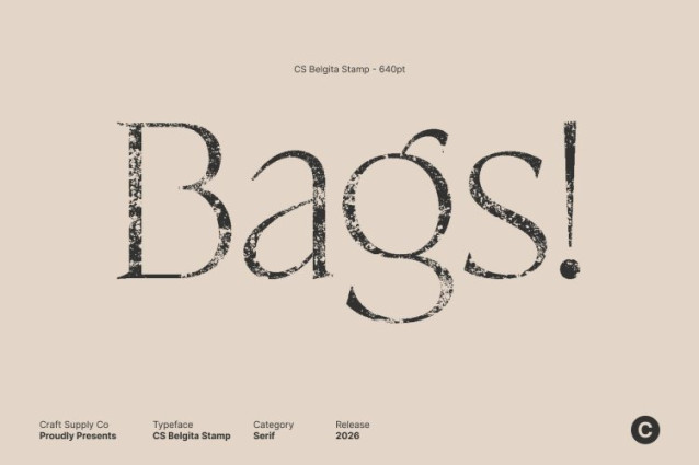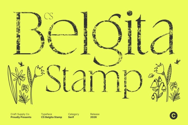 CS Belgita Stamp Font This is an elegant serif font crafted with clean, slender letterforms and enhanced by a subtle stamp texture. Its precise construction and balanced proportions communicate refinement and confidence, while the stamped effect adds a soft vintage character and artistic depth. This fusion creates a typeface that feels elevated, expressive, and timeless.