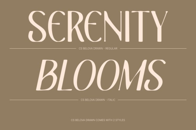 CS Belova Drawn Font This is an serif font crafted with clean, slender lines and enhanced by a subtle hand-drawn texture. Its balanced structure delivers sophistication and clarity, while the drawn details introduce warmth and gentle character. The result is a serif that feels polished yet approachable refined without feeling rigid.