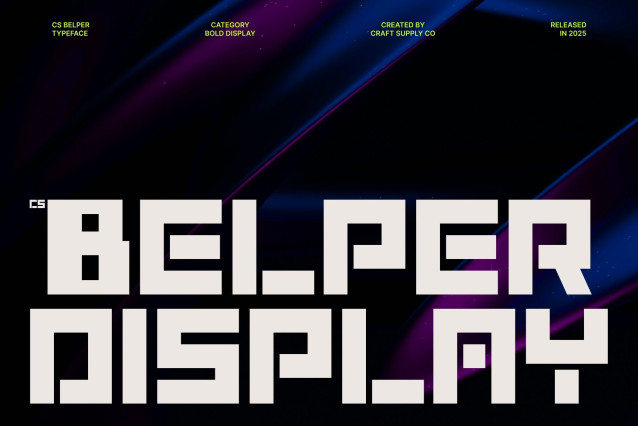 CS Belper Font – This is a bold futuristic display font designed to radiate modern energy and visual intensity. Built with a strong techno foundation, this font embraces sharp forms, assertive structures, and experimental details that immediately set it apart. Its design reflects a forward-thinking mindset, combining industrial toughness with a contemporary digital edge.
