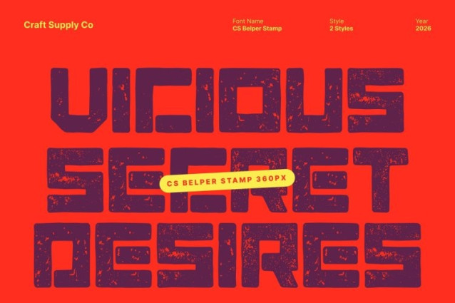 Pushing beyond conventional typography, this font explores unconventional proportions and dynamic constructions. The addition of a stamp effect adds an artistic, handcrafted layer to its experimental design, making the font feel both innovative and grounded. This blend of modern expression and vintage texture makes it ideal for designers seeking bold, unconventional visual statements.