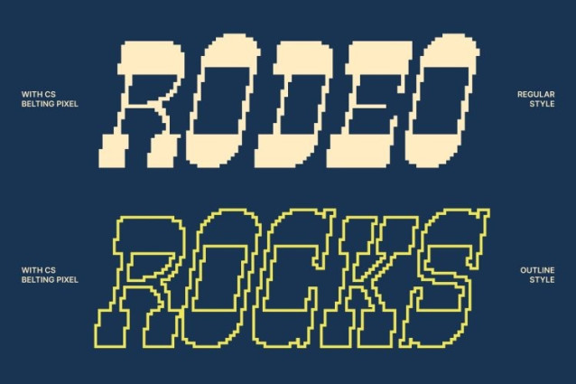 CS Belting Pixel Font This is a bold western display font that blends classic Wild West spirit with a distinctive pixel-based construction. Inspired by frontier signage, cowboy culture, and vintage wanted posters, this font reimagines rugged western typography through an 8-bit digital lens.