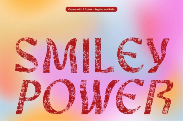 Defined by thick strokes and flowing shapes, this font radiates movement and creativity. The stamped texture introduces subtle imperfections, giving each character a raw, tactile quality that feels alive and expressive. This blend of psychedelic rhythm and aged texture results in typography that feels both dynamic and authentic.