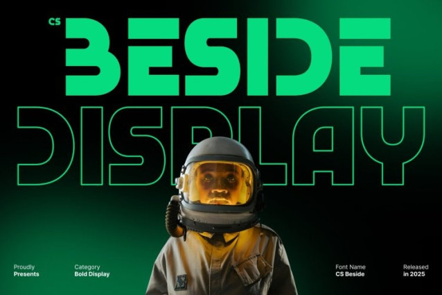 CS Beside Font This is a bold display font that commands attention with its strong, impactful letterforms. Its experimental and futuristic design makes it ideal for projects that need a high-energy, visually striking presence. Perfect for posters, headlines, or branding, this font ensures your message stands out with authority and style.
