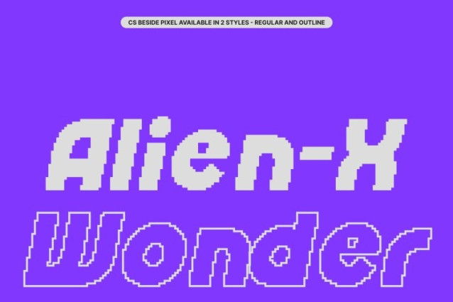 CS Beside Pixel Font This is a bold display font designed to command attention through strong, impactful letterforms built in a pixel style. Its solid structure and heavy weight create an immediate visual punch, while the pixel construction adds a distinctive digital and retro-futuristic character. This combination makes the font feel powerful, energetic, and visually striking perfect for designs that must stand out instantly.