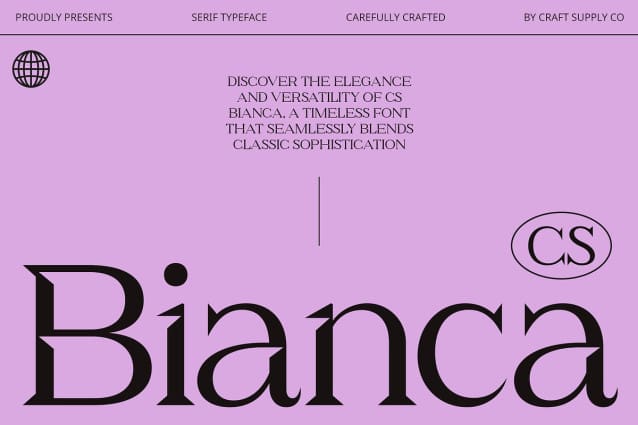 Versatile and Sophisticated CS Bianca offers versatility and sophistication, making it a reliable choice for designers seeking a serif typeface that combines classic charm with contemporary refinement. Whether used in branding, editorial layouts, or digital applications, this font elevates the visual impact of your designs with timeless elegance