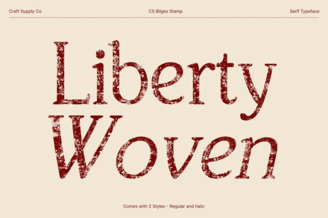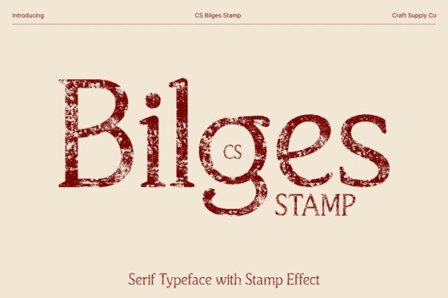 CS Bilges Stamp Font This is a modern classic serif font that blends traditional elegance with a subtle contemporary sensibility, now enriched with a distinctive stamp texture. Its clean structure and softly rounded edges are complemented by a slightly worn finish, giving the font a refined yet nostalgic appearance that feels both timeless and authentic.