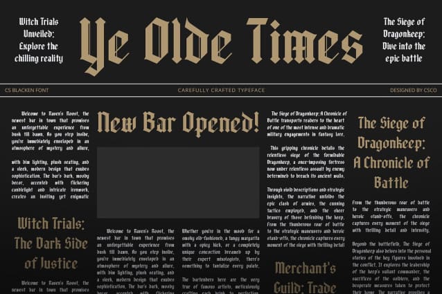 Versatile for Formal and Historical Projects Whether you’re working on high-impact documents, historical artwork, or any project that benefits from a classic and formal tone, CS Blacken provides the perfect solution. Its rich design offers both visual strength and a touch of mystery, making it a versatile choice for conveying a grand and distinguished message.