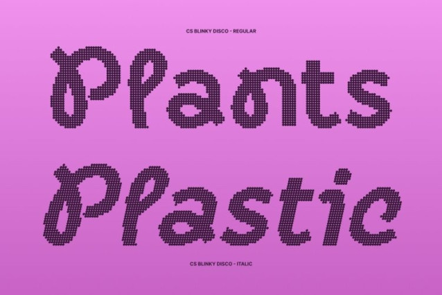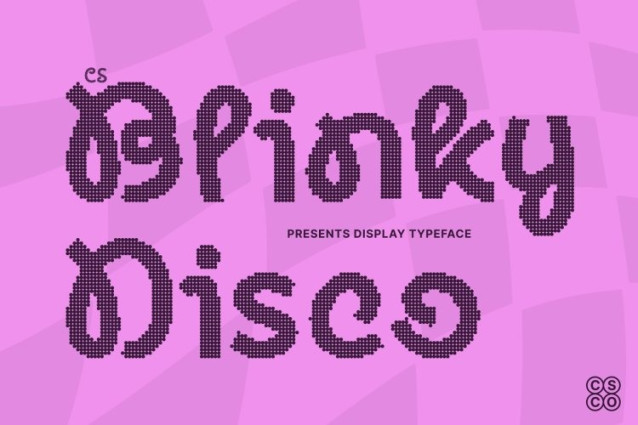 CS Blinky Disco Font This is a modern experimental sans serif font created to celebrate creativity and originality. Its distinctive letterforms and quirky details break away from convention, delivering a bold typographic identity that feels fresh, imaginative, and full of personality.