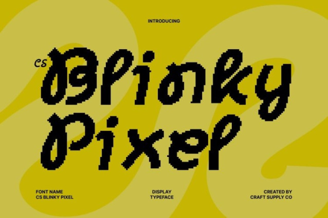 CS Blinky Pixel Font This is a modern experimental sans serif font designed to celebrate creativity and originality through a playful pixel approach. Its unconventional letterforms and lively construction break away from rigid norms, resulting in a typographic style that feels fresh, expressive, and visually exciting. The pixel influence adds a digital character that feels fun and contemporary.