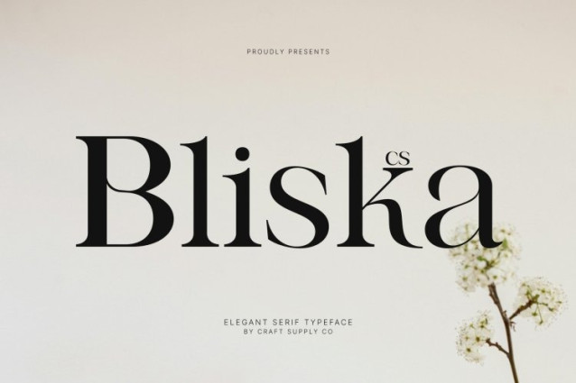 CS Bliska Font This is an elegant serif font designed to express refinement, calmness, and beauty. Its graceful letterforms and balanced proportions create a sophisticated appearance that feels timeless and composed. Every character is crafted to convey subtle luxury and poise, making the font visually soothing and aesthetically refined.