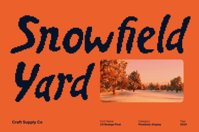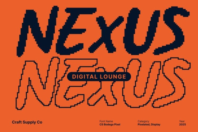 CS Bodega Pixel Font This font brings together the fun energy of a handwritten style with the nostalgic structure of pixel graphics. Designed to look cute, lively, and expressive, this font features bold strokes that amplify its handwritten character, making every letter feel dynamic and full of personality.