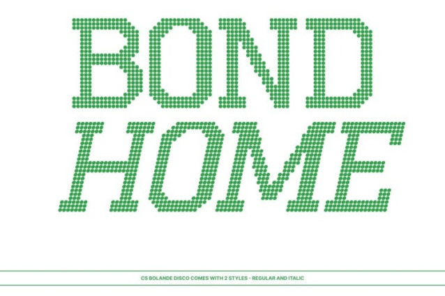 CS Bolande Disco Font This is a sharp slab serif typeface built from bold, block-like forms designed to create powerful and commanding visuals. Clean, precise lines meet sturdy letterforms, delivering confidence and authority enhanced by a subtle disco-era attitude. Every curve and edge is carefully shaped to maintain clarity, balance, and rhythmic presence especially in large-scale compositions.