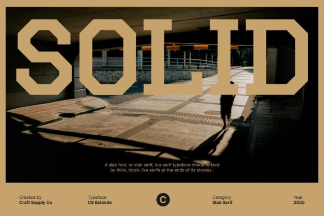 CS Bolande Font is a sharp slab serif typeface composed of blocks like, crafted to create powerful and commanding visuals . Designed with clean, precise lines and sturdy letterforms, it delivers a sense of solidity and confidence, making it perfect for designs that demand attention and authority. Every curve and edge is meticulously shaped to maintain clarity and balance, even in large-scale compositions.