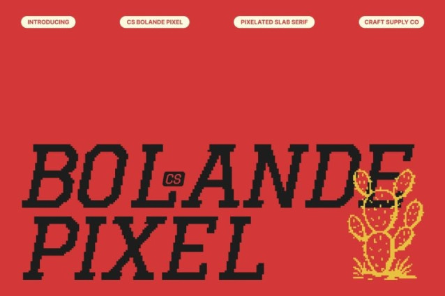 CS Bolande Pixel Font This is a sharp slab serif typeface built from block-like structures and pixel-inspired forms. Its solid construction and crisp edges create a powerful visual presence that feels confident, modern, and digitally driven. The pixel influence adds a subtle retro-tech character, giving the font a strong identity rooted in both contemporary and classic digital aesthetics.