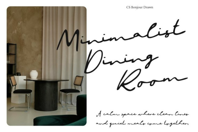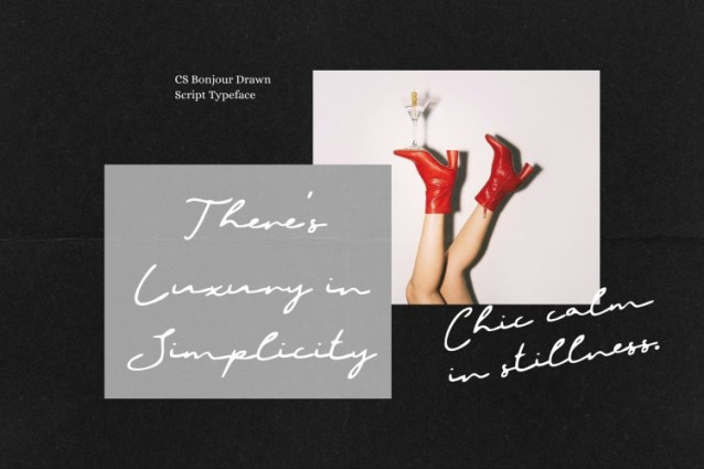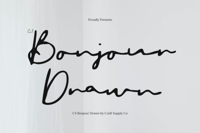 CS Bonjour Drawn Font This is a refined signature script font designed to capture the natural elegance of authentic handwritten signatures. Its smooth, confident strokes create a sophisticated handcrafted look that feels personal yet professional. Enhanced with a subtle drawn texture, the font delivers warmth and individuality, elevating visual identities with effortless charm.