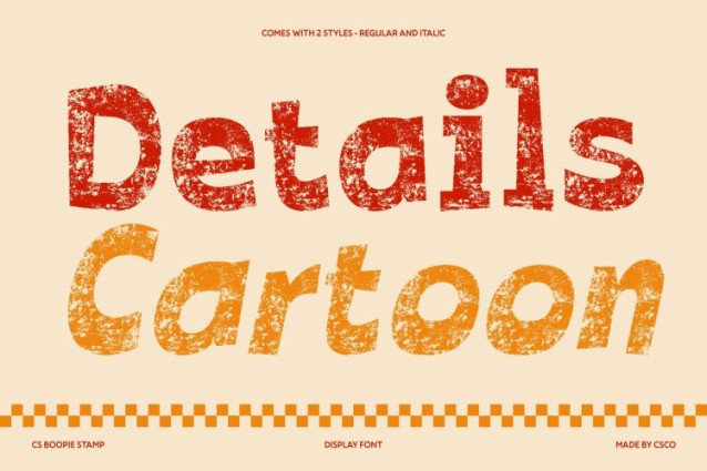 CS Boopie Stamp Font This is a bold display font that radiates fun, friendliness, and expressive energy now enhanced with a distinctive stamp texture. Its thick, rounded letterforms combine smooth curves and bubbly proportions, creating a cheerful and inviting personality. The textured finish adds a handcrafted, print-inspired feel that gives the font extra warmth and visual depth.