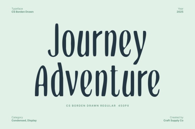 CS Borden Drawn Font – This is a condensed modern sans serif font designed with long, slim letterforms that exude refined beauty. Its sleek proportions create a graceful visual rhythm, making each character feel elegant yet contemporary. This subtle sophistication allows the font to bring a sense of elevated style to any design it touches.