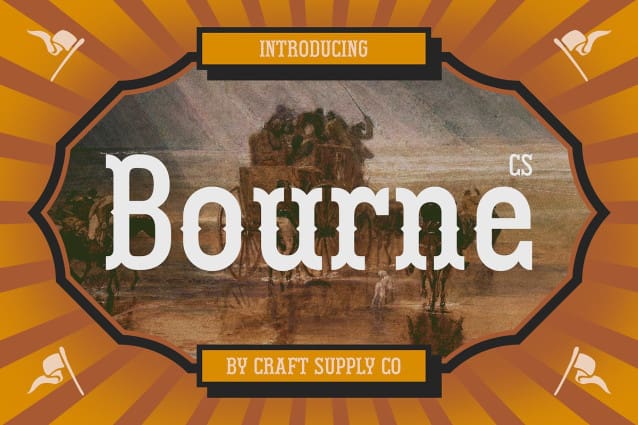 CS Bourne font is made for personal use. Get the full version of the fonts if you want to use it for commercial purposes by purchasing the licenses here: https://creativemarket.com/craftsupplyco/288672802-CS-Bourne-%E2%80%93-Tuscan-Font?u=fontlot123