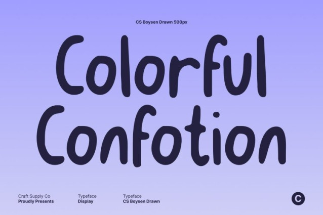 CS Boysen Drawn Font This is a friendly handwritten font that bursts with joy and creativity. Built with rounded sans serif strokes and playful shapes, it delivers a natural, approachable feel that instantly adds warmth and personality to any design. The drawn effect enhances its handcrafted look, giving each letter a lively, human touch that feels spontaneous yet thoughtfully balanced.