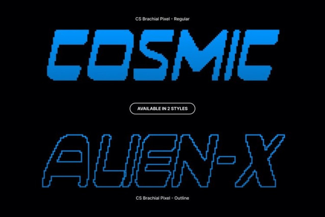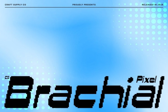 CS Brachial Pixel Font This is an edgy sans serif font reimagined in a bold pixel style, channeling high-energy techno and futuristic aesthetics. Built with reverse contrast and sharp geometric pixel forms, this font delivers a striking digital impact that feels cutting-edge, modern, and unapologetically bold. Every letter is carefully constructed to balance mechanical precision with strong visual personality.