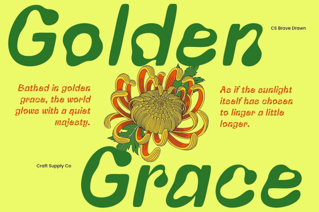 CS Brave Drawn Font – This is a modern display font with a bold, trippy, and psychedelic style that exudes a fun and cheerful vibe. Its energetic letterforms are designed to grab attention and evoke a sense of creativity and freedom, making it perfect for bold designs that stand out from the crowd.