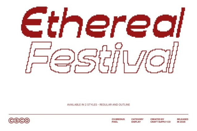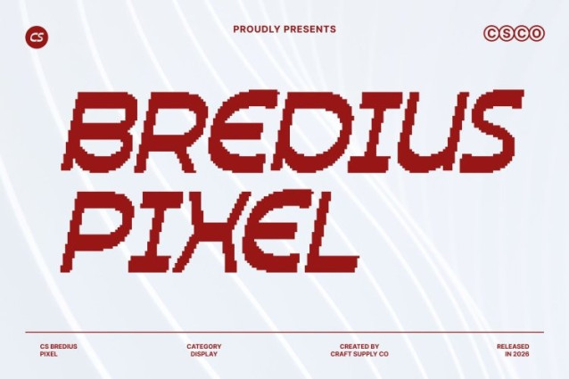 CS Bredius Pixel Font This is a cheerful display font that transforms playful typography into a bold pixel-driven style. Built with expressive shapes and an unconventional rhythm, this font delivers a fun, energetic presence inspired by retro digital visuals. Its pixel construction adds a nostalgic edge while amplifying the font’s creative and joyful personality.