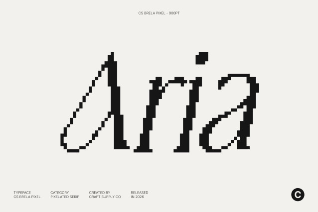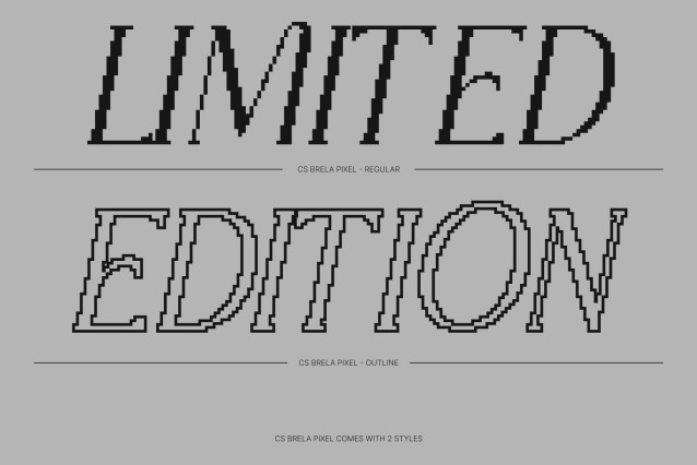 CS Brela Pixel Font This is an elegant serif font reinterpreted through a pixel-inspired lens, combining refined letterforms with a relaxed, approachable personality. Its simple and well-balanced shapes ensure clarity and legibility, while the pixel construction introduces a subtle retro-digital feel. This fusion creates a serif font that feels elegant yet casual, blending classic sophistication with nostalgic pixel character.