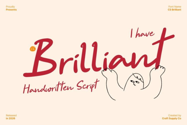 CS Brilliant Font This is a handwritten script font designed to capture the beauty of natural pen strokes with a clean, modern touch. Its soft structure and smooth flow create a friendly and approachable appearance, blending the authenticity of handwriting with the clarity of a sans serif. This balance makes this font expressive without feeling messy, and personal without losing readability.