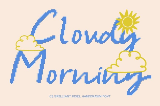 CS Brilliant Pixel Font This is a handwritten script font that captures the beauty of natural pen strokes through a subtle pixel interpretation. Its smooth flow and gentle curves create a friendly, approachable appearance while maintaining a clean and modern feel. The pixel structure adds a soft digital nuance, allowing the font to feel expressive and personal without becoming messy or overwhelming.