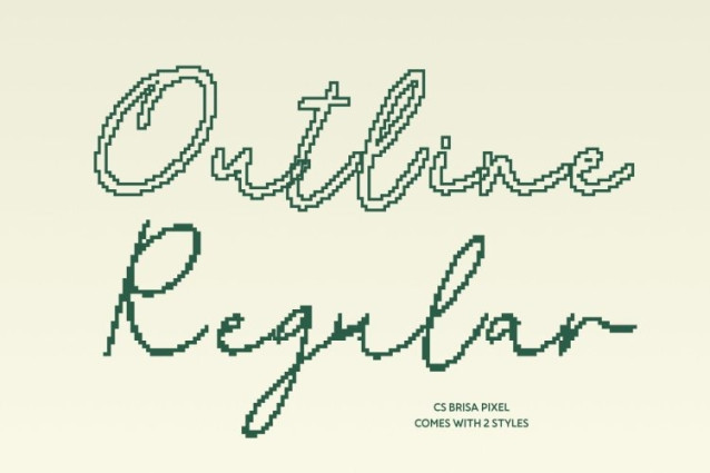 CS Brisa Pixel Font This is a monoline script font that transforms smooth, flowing handwriting into a pixel-inspired design. Each letter retains its graceful curves and rhythmic motion while adopting a subtle digital texture, giving the font a modern, tech-friendly twist without losing its timeless sophistication. Perfect for designs that need both charm and clarity in digital or retro-themed projects.