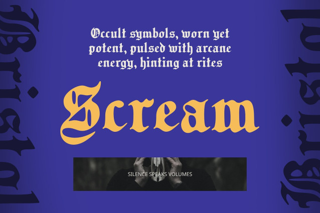 CS Bristol Drawn is a display font inspired by the rich visual heritage of Old English typography. Its sharp, ornamental letterforms echo the grandeur of medieval manuscripts, showcasing traditional blackletter styling with intricate craftsmanship and dramatic flair.